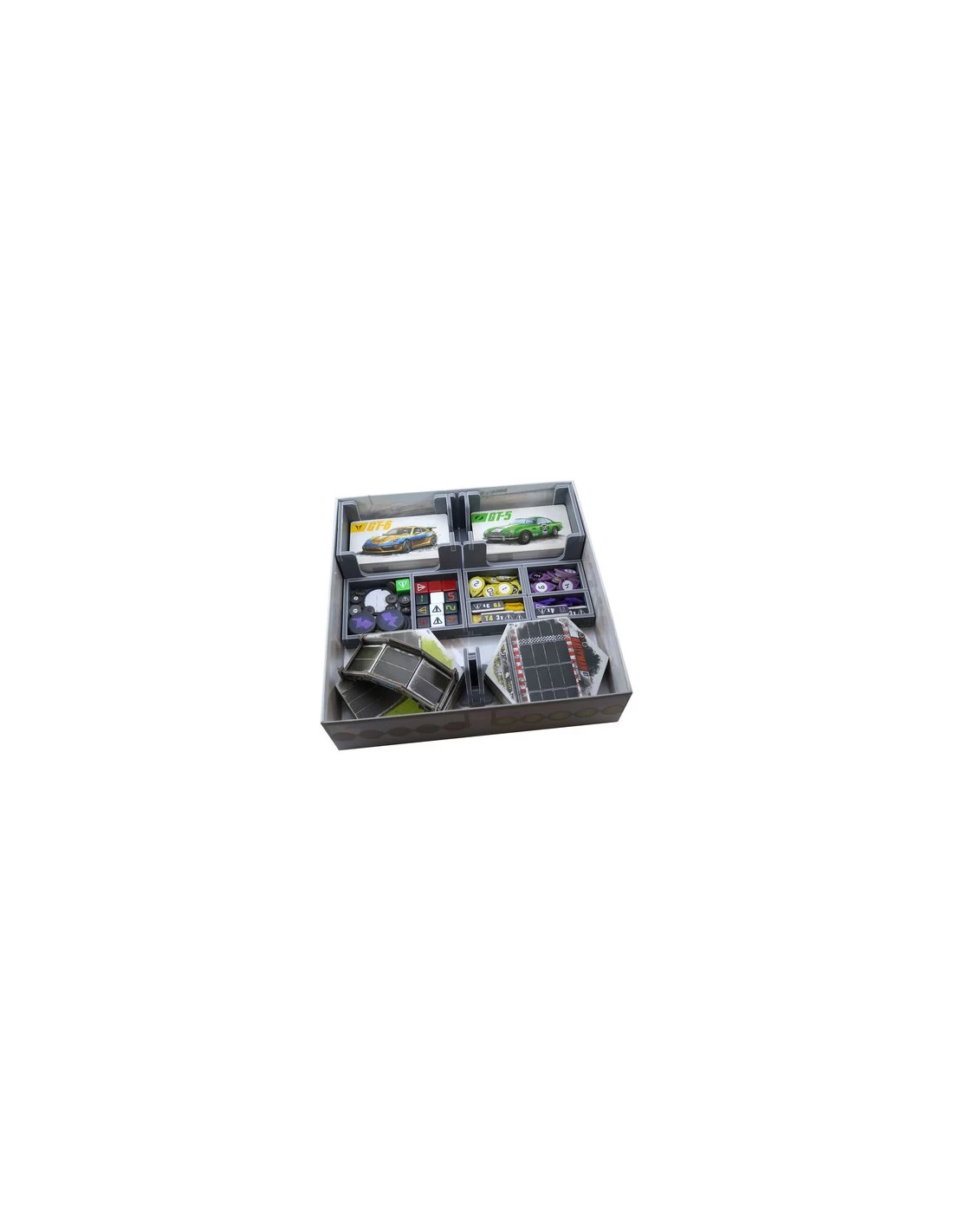Insert compatible with Rallyman: GT®, including the Championship®, Team Challenge®, World Tour®, GT4®, GT5®, and Adrenaline Pack® expansions. The design provides both efficient storage and improved game play. The trays can be utilised during the game, and they greatly aid set-up and clear-away times.