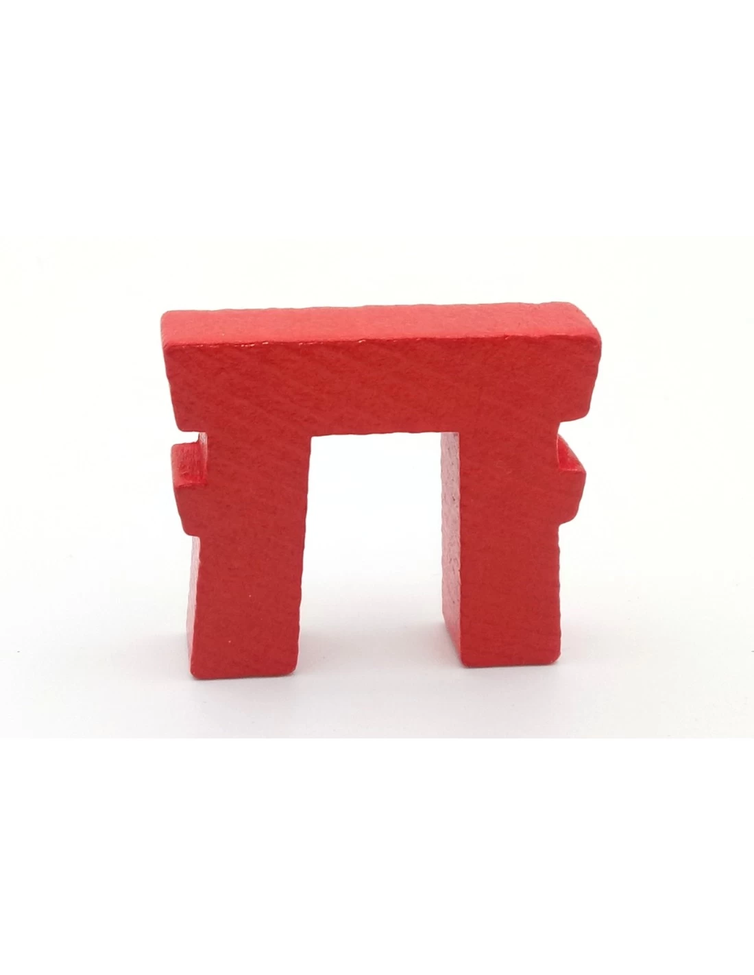 Roodgekleurd Monument van Yamatai. Het monument is 4 cm breed en 3,5 cm hoog.