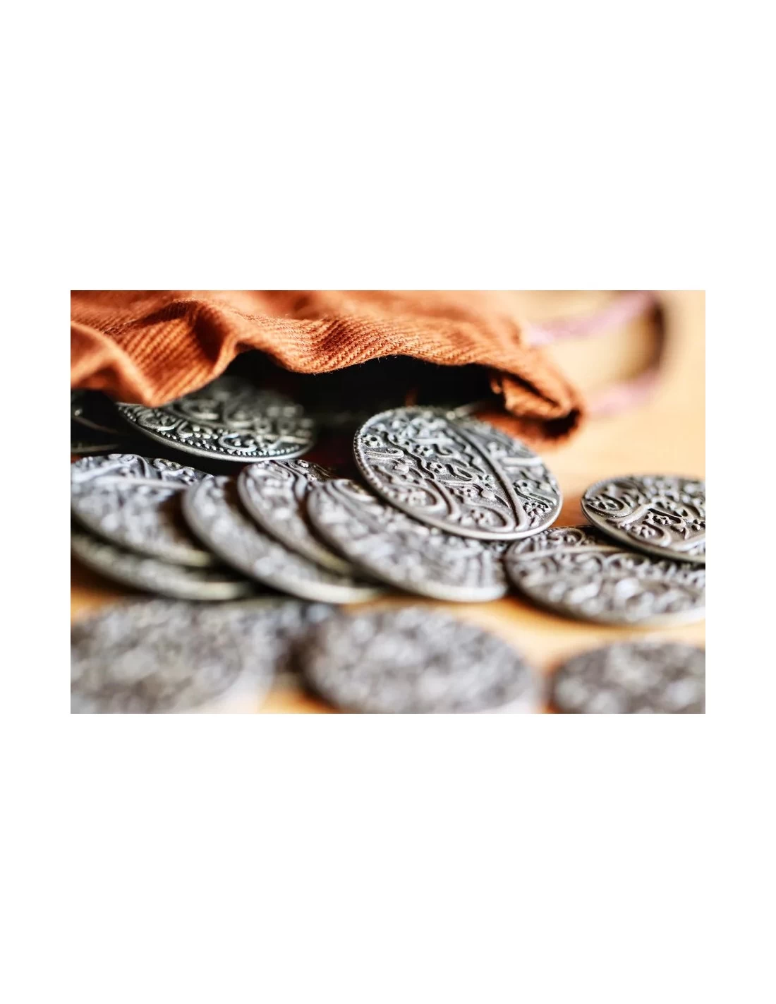 Set of 36 metal coins and a cloth bag for Pax Pamir: Second Edition. Single denomination.