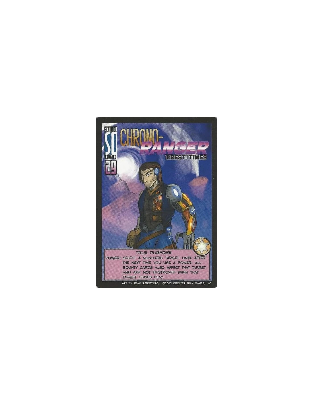 Innate Power: True Purpose. Select a non-Hero Target. Until the start of your next turn, all Bounty cards also affect that target and are not destroyed when a target leaves play.