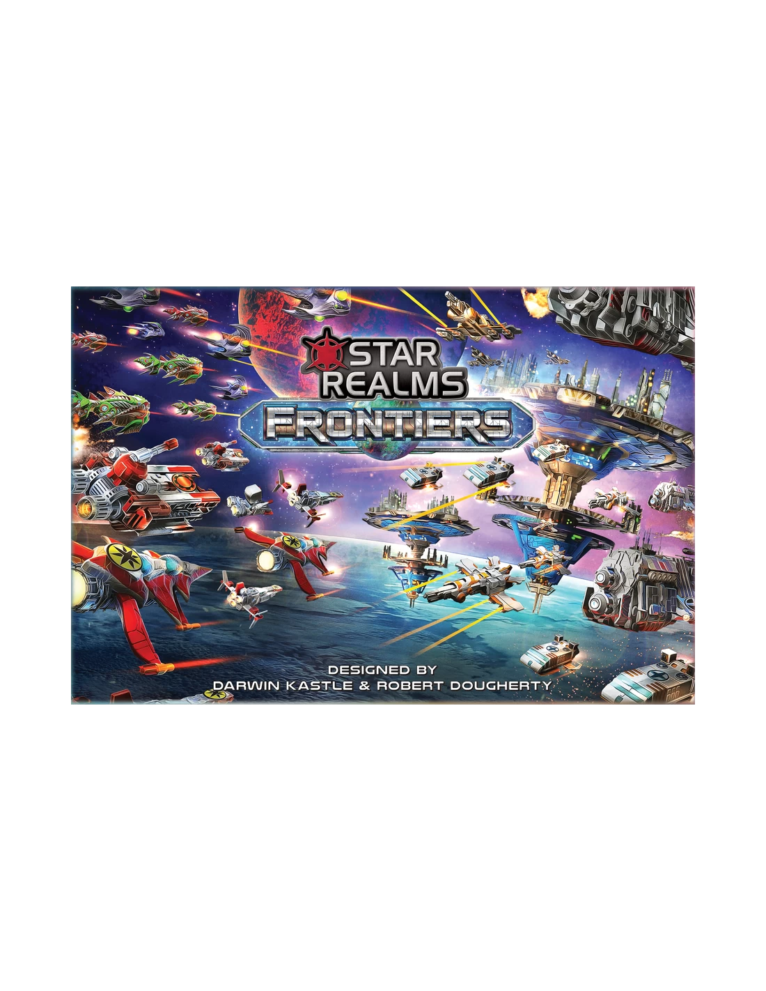 Star Realms: Frontiers is a new standalone Star Realms series game with an 80-card trade deck and new scorecards that’s suitable for play with up to four players. It can be combined with Star Realms and/or Star Realms: Colony Wars.