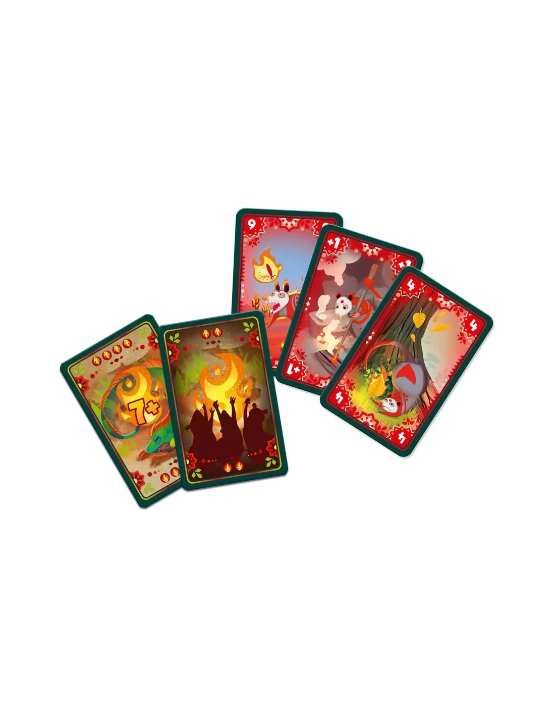 At the start of a round, players choose only 3 cards out of up to 10 to use this round. On their turn they can either play a card exactly 1 higher than the last or pass. If your card is still on top of the playing pile when your turn comes around again, then you win the round and take a fire card and sometimes steal some more from others.
