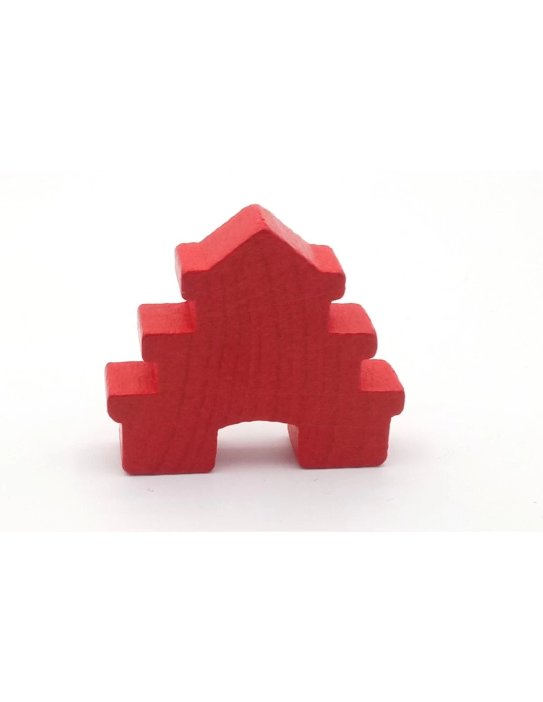 Rood gekleurde Tempel van Yamatai. Het gebouw is 4 cm breed en 3,5 cm hoog.